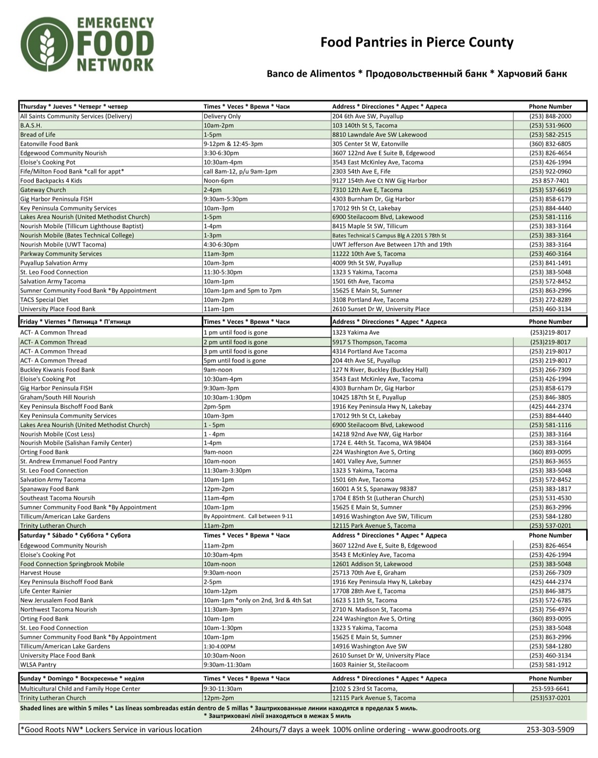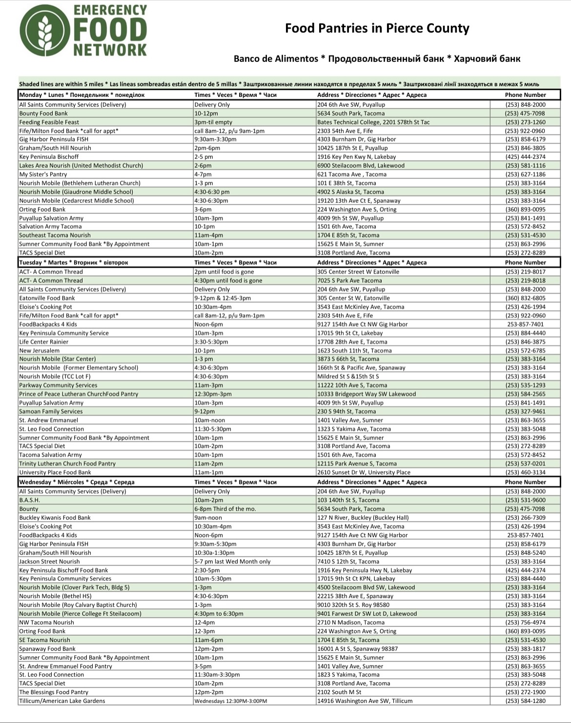 Emergency Food Network List